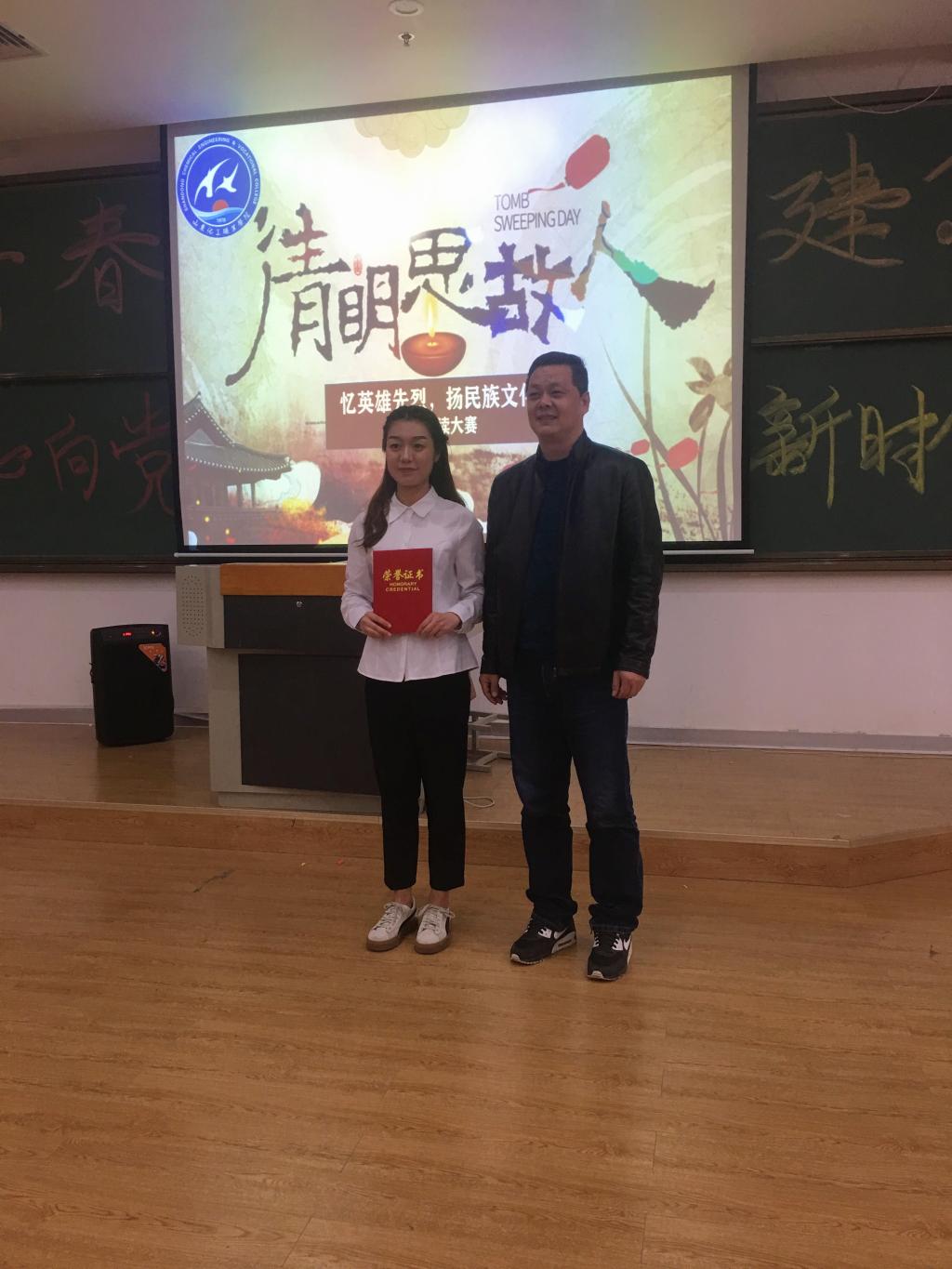本次比赛活动我系表现活跃,同学们以一等奖一名、二等奖三名的优异成绩为我系赢得了荣誉,充分体现了化学工程系团结拼搏的集体精神。这样耀眼的成绩并不是凭空而得,而是我系莘莘学子的不懈努力换来的,俗话说“台上一分钟,台下十年功”,我系员工在平时排练时多角度思考,使文章更具有深度和内涵。