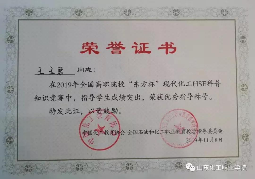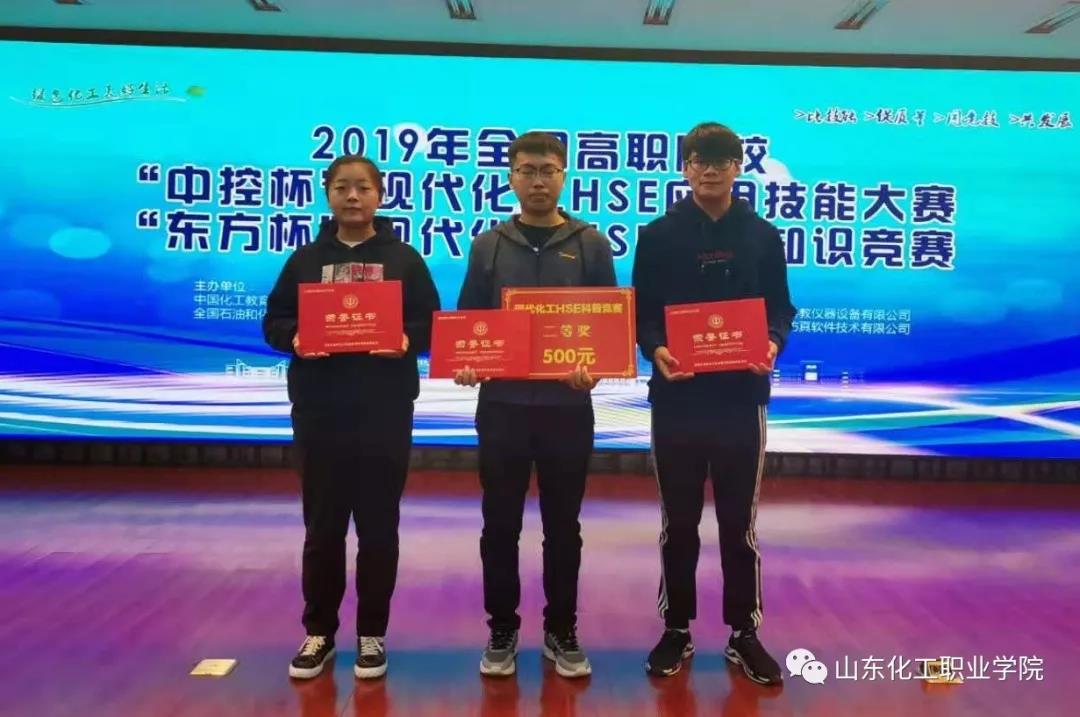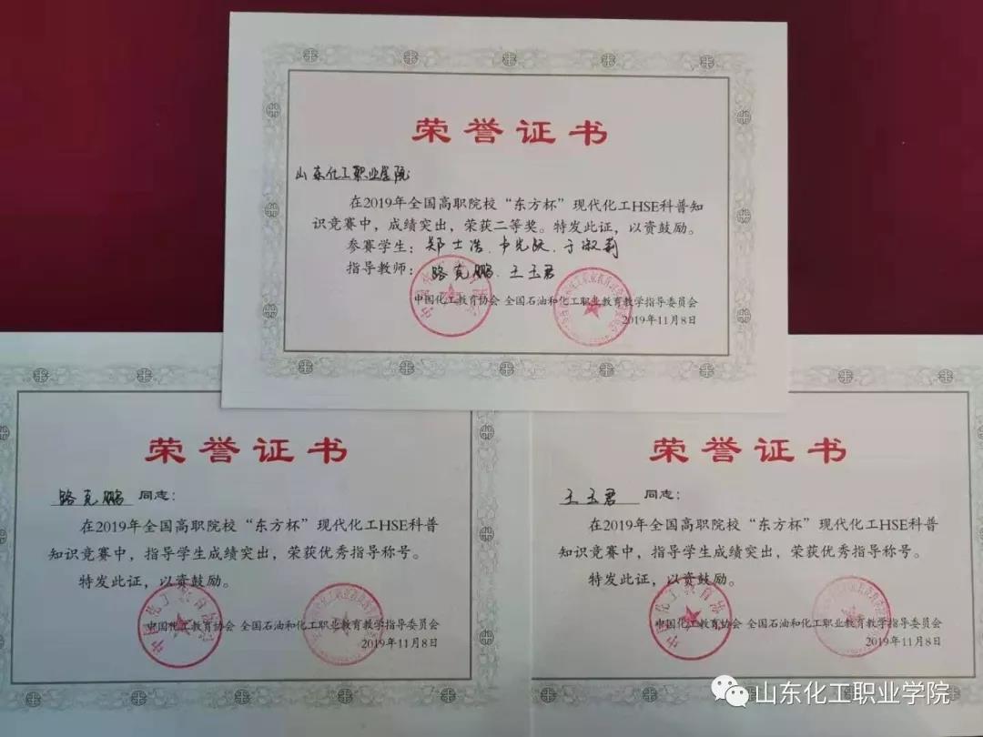 11月7日,由中国化工教育协会主办,高职化工安全及环保类专业教学指导委员会、徐州工业职业技术学院承办的2019年全国高职院校现代化工HSE科普知识竞赛在徐州工业职业技术学院举行。威廉希尔体育化学工程系员工郑士浩、卢光跃、于淑莉组成的代表队,在比赛开局不利的情况下,奋起直追,获得小组第二名,并最终荣获科普知识竞赛团体二等奖,路克鹏、王玉君老师荣获优秀指导教师称号。