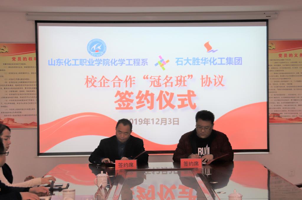 签约仪式上,冯主任介绍了学院建校以来的发展情况以及化学工程系概况,并强调了本次校企合作“冠名班”签约的重要意义。冯主任强调,校企合作签订“冠名班”符合现代职业教育理念,是我系坚持理论教学与实践教学相结合的重要支撑。通过本次合作,我系与石大胜华不仅要建立长期稳定的合作关系,向企业输送高质量化工专业人才,还要不断深化合作的广度和维度,寻求项目合作、技术交流等合作方式。冯主任表示,我系将借助石大胜华企业平台,不断发挥人才培养、技术服务的社会职能。
