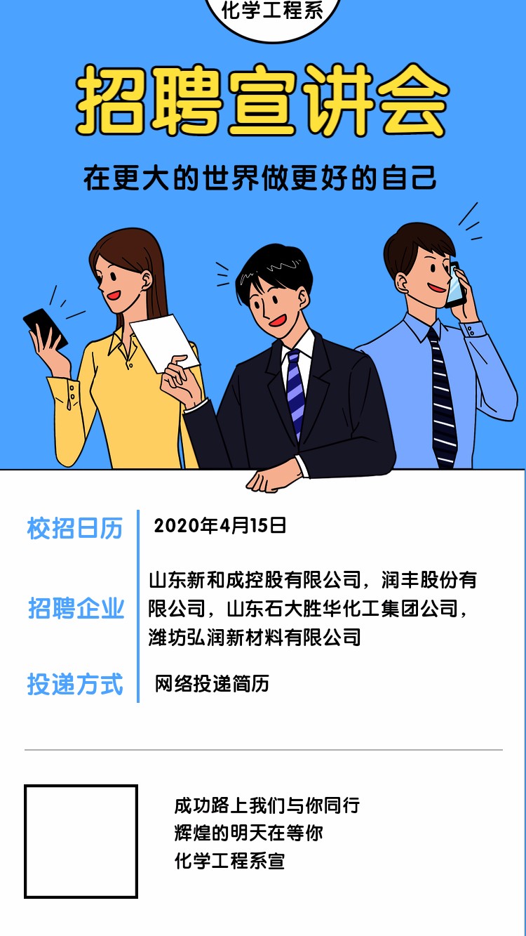 首期宣讲企业包括山东新和成控股有限公司、润丰股份有限公司、山东石大胜华化工集团公司、潍坊弘润新材料有限公司四家大型化工企业。