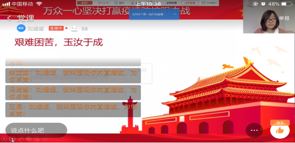 党员教师韩晓琳说:“本次党课以‘战胜新冠肺炎疫情的关键--中国精神、中国智慧、中国力量’为主题,向同学们展示了在危难面前,中华民族能够攻坚克难、砥砺前行的重要法宝。这次主题党课同学们踊跃参与,深受鼓舞,积极表达自己的感悟和对祖国未来的美好祝愿。”