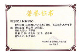 2020年,石油化工技术被山东省职工教育协会评为示范性品牌专业