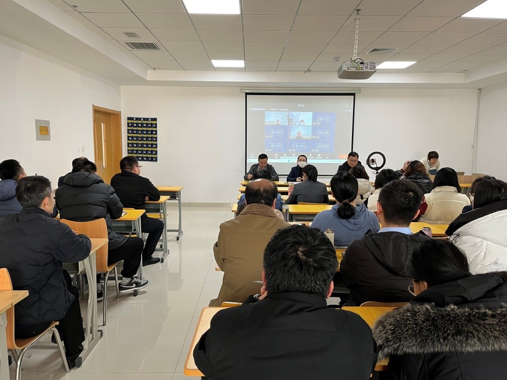 2021年12月15日,威廉希尔官网通过线上、线下同步的形式,在2308教师召开全体教职工大会。本次会议重点强调了期末考试布置及安排,副经理吕宜春、副书记王恒磊、副经理兼副书记葛彩霞分别发表讲话。